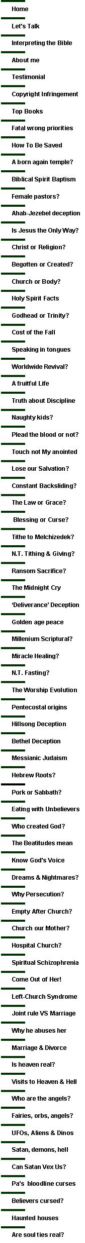 WHAT IS JEWISH AND CHRISTIAN JUDAISM ACCORDING TO THE REAL TRUTH OF GOD’S WORD? IT IS ESSENTIAL TO UNDERSTAND THAT MOST, IF NOT ALL, FALSE DOCTRINES WERE MANUFACTURED BY BLENDING AND CONFUSING THE TWO DIFFERENT TESTAMENTS OR COVENANTS OF THE BIBLE. Separating the Two Testaments or Covenants forever, the Lord Jesus Christ prophesied in Mark 14:58 and Matthew 24:1-2, “[At the cross] I WILL DESTROY [the literal Old Testament] TEMPLE, AND IN THREE DAYS AND NIGHTS I WILL BUILD ANOTHER [eternal, spiritual temple] WITHOUT HANDS… NOT ONE STONE WILL BE LEFT HERE UPON ANOTHER, THAT WILL NOT BE THROWN DOWN,” (Jn. 19:28-30; Jn. 2:18-22.) “GOD DOES NOT LIVE IN A TEMPLE MADE WITH HANDS!” (Acts 7:44-50.) Therefore, “THE FIRST TEMPLE WAS [merely] SYMBOLIC [of the offerings] THAT COULD NOT MAKE [anyone] PERFECT, BUT CHRIST CAME AS HIGH PRIEST OF THE PERFECT TEMPLE NOT MADE WITH HANDS, WHICH IS NOT OF THIS CREATION,” (Heb. 9:8-11; Lu. 17:20-21 KJV! 1 Cor. 3:16-17.) ► Jesus destroyed the Hebrew temple completely on a spiritual level at the cross, where He, the Only True Christ, inaugurated His eternal New Testament Covenant. This was the manifestation of Jesus’ prophecy to all the antichrist Judaist and Messianic Judaism/Zionism blasphemy against His Holy, Greek Name; His eternal spiritual New Testament Covenant, His FULL atonement for all true believers from all nations who would personally accept Him, (Jews included,) and His holy, SPIRITUAL Kingdom “within” His SPIRITUAL temple of true believers, (Luke 17:20-21 KJV!) THE ISRAELI TEMPLE BUILDING WAS ALSO LITERALLY DESTROYED IN 70 A.D. Still, the Jews desperately try to revive Judaism by wailing at a portion of the Western wall, where a part of the temple allegedly stood standing. > But the context of Scripture prove that absolutely NOTHING of the Old Testament temple and its governing, outward, ceremonial laws remained either spiritually or physically, exactly as Jesus prophesied. Hebrews 8:7,13, “IF THAT FIRST COVENANT [with the Hebrews] HAD BEEN FAULTLESS, THEN NO PLACE WOULD HAVE BEEN SOUGHT FOR A SECOND… IN THAT GOD SAYS, ‘A NEW COVENANT,’ HE HAS MADE THE FIRST OBSOLETE. NOW WHAT [has become obsolete at the cross,] HAS VANISHED AWAY, (Jn. 19:28-30!) ► What do Jewish Judaism, Christian Messianic Judaism/Zionism, and the whole unscriptural church system too,) not understand about these facts? The truth is that Judaists of all sorts do NOT have a covenant with God, whereby they can justify their blasphemy against the Lord Jesus Christ, Who utterly fulfilled ALL the Old Testament prophesies cornering Him! > Judaism is not really about seeking a “Hebrew” name for the Lord Jesus — which is unnecessary. It is about annihilating the Personhood, Gospel, and New Covenant of the Real Christ. The New Testament was written in Greek, not in Hebrew. The Jewish Encyclopaedia: “JEHOVAH” - a mispronunciation of the unpronounceable Hebrew Name YHWH. [The Hebrew language pronounces only non-vowel sounds or consonants (B,T,G,H,W,V…) To add vowels, (A,E.I,O,U) to God’s Name twists the meaning of His Name.] YHWH is not “Jehovah” but means “I Am Who I Am,” which is the “True Name of God” — and it is not occultism, as some blasphemously allege, (Ex. 3:13-15.) > Same goes for all the other so-called ‘Yiddish’ names by which they try to replace the Savior, the Lord Jesus Christ with a fake christ, which Judaists, who crucified the Genuine Christ, thought up. Judaism and Christian Messianism/Zionism teach the shameless rejection of The Truth, Jesus Christ Himself, which is a dangerous antichrist deception that permeated Christianity. That is why they supposedly teach believers some ‘Yiddish’ words to sound spiritual, while they blaspheme against the Almighty Greek Name of the Lord Jesus Christ – thereby rejecting the Only Christ of the True Scriptures and their salvation through Him! Jesus, God Who became a man, is “the Name above ALL names. In the Name of Jesus every knee will bow of things in heaven, on the earth, and under the earth. And every tongue will confess that Jesus Christ is Lord, to the glory of the Father,” (Phil. 2:9.) That is why “Jesus is the Only Name by which we can be saved,” (Acts 4:12.)