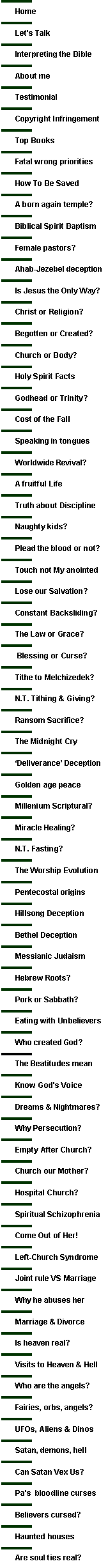 Facebook post February 2020 In the Beatitudes, Jesus was definitely not commanding passivity, martyrdom, literal poverty, or worthlessness to inherit blessing and eternal life. Jesus was preparing His disciples to expect adversity in this world and commanded them to minister to sinners in the opposite spirit by living in His inward Moral Law of Love and Truth. Yet, this is easier said than done. Even though the Holy Spirit indwells all true disciples, we still have our own humanity to deal with. That is why we must “renew or transform” our minds (thoughts, will, intellect, and emotions) to understand His Word and live under the control of the Spirit, (Rom. 12:1-2.) Jesus blessed such obedience in Mt. 5:2-12 and said, “Blessed is the poor in spirit, [the humble and unselfish,] for theirs is the kingdom of heaven. Blessed are those who mourn, [the sorrow of repentance and suffering,] for they will be comforted. Blessed are the meek, [not weak, but self-disciplined and submitted to God,] for they will inherit the earth. Blessed are those who hunger and thirst for righteousness, [waiting for God’s justice and leaving all vengeance to Him,] for they will be filled. Blessed are the merciful, [who seek the salvation of souls, and take care of people and God’s creatures,] for they will obtain mercy. Blessed are the pure of heart, [the sincere and loyal] for they will see God. Blessed are the peacemakers, [not peace at any price, but according to Jesus’ true Gospel and Moral Law,] for they will be called sons of God. Blessed are those who are persecuted for righteousness, for theirs is... heaven. For when they revile and abuse you, and say all kinds of evil against you falsely for My sake, rejoice and be exceedingly glad, for great is your reward in heaven, for so they persecuted [all the righteous believers] before you.” Then Jesus taught us exactly how to live in these blessings. (Paraphrased.) Should we offend someone else, we must hurriedly confess our sin and repent – which is Godly love for people and the easy part of human relations, (Jam. 5:16-18.) And when people hate, persecute, and lie to us, we must also respond with Godly love and do good to them by praying for them, speaking the whole truth to them, etcetera. If our enemies lay wounded, we must take physical care of them as the Holy Spirit leads us. And even if they continue to hate and persecute us, we should not allow them to upset us but remain obedient to The Word. Love, prayer, forgiveness, and kind deeds to those who hate us are not feelings but firm decisions to stay faithful to Jesus. Jesus then took obedience to a spiritual level. He said, if someone is angry with you “without cause,” love him or her enough to “leave your gift before the altar, [prayers, praise and thanksgiving to God,] and first be reconciled with that person [as far as it depends on you;] then come and offer your gift.” If that angry person does not repent, he or she is “in danger of judgment” because sinful anger is emotional murder, which can spiral into physical murder, (1 Jn. 3:15.) “[Do not be vengeful.] If someone slaps you on the cheek, turn the other cheek also.” This does not mean we must be his punching bag. A slap on the cheek is an insult, not a violent attack. So, do not be angered by minor offenses. Allow one more offense before confronting the problem as Jesus commanded in Mt. 18:15-20. And “if he wants to take your tunic, [shirt, etcetera,] let him have your cloak [jacket] also.” Jesus was not saying we must let people rob us blind. All these commandments address minor offenses against us to teach us not to retaliate in a way that is childish, selfish, and idolatrous. We must always “do unto others as we want them to do unto us.” If we do not want to be mistreated, we must never mistreat others... Jesus said we "shall know [one another by our] fruit,” not our words, so-called “anointing,” or shallow “love.” May God give us all the grace to obey Jesus’ teachings in all our relationships, which is the Moral Law that will judge us in the Last Day, as He warned in Jn. 12:48. Of course, we cannot do this by ourselves. That is why we have the power of the indwelling Holy Spirit, Who will remind us of the Beatitudes, so that we can stay blessed by loving God, others, and ourselves according to the Moral Law, which is written on every human heart. ► The Seven Ecclesias in Revelation show us How to Overcome Satan’s Traps Consequences of the fall: humanity died spiritually and their souls or minds were corrupted Did God give all men permission to rule over all women? Did God change the Marriage Covenant so we may divorce as we please? God’s Specific Plan is the Marriage Covenant; His General Plan is Joint Management of the earth Is it Scriptural that WOMEN SHOULD MINISTER in the ‘church’ just like men do? UNSCRIPTURAL HIERARCHY OF ‘RULING’ ‘ELDERS’ How to live fruitful in the Kingdom of Jesus Christ Þ The Great ‘Deliverance’ Deception Constant backsliding “is okay because Paul cried, “Oh wretched man that I am?” How do I know I have a demon, and witches and their curses